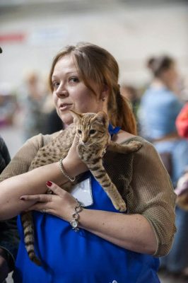 Ruskeatäplikkäät ocicatit olivat tuomari Sirpa Lindelöfillä, jolla oli myös tuomarioppilas Philippe Ventura. Itse olin assistenttina tälle kaksikolle, todella mukavia ihmisiä molemmat. Tara oli luokassa 9 eli avoimessa luokassa, pennut Dora ja Rokka tietysti pentuluokassa 12. Tara oli menopäällä, kontrasti kahteen edelliseen ocicattiin, jotka olivat rauhallisia kollikissoja, oli melkoinen. Tara oli kuitenkin kiltisti kuten aina, mutta sen esittämiseen tarvitaan kyllä aika nopeita refleksejä. Tuomarin parhaan naaraan valinnassa Tara suostui olemaan jopa venytyksessä ajoittain, vaikka koittikin sitten kiipeillä olkapäilleni ja selkään. Mutta pikku-Mii jopa kehräsi näyttelyssä – varmaan kiima oli sekoittanut sen pään totaalisesti. 🙂 Tara sai hyvät arvostelut tuomareilta, ja ansaitsi CAC-sertinsä, joten se valmistui Championiksi.