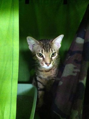 Rokan sisko Northalla Peridotite ”Lily” oli myös kumpanakin päivänä Ex1. Tällä kertaa ei muuta meriittiä, mutta sunnuntaina tuomari kyllä mietti pitkään suklaatäplikkäiden nuorten ja pentujen värin paras -valinnassa, kummastako tykkää enemmän, Lilystä vai Guttatus Princess Sophiesta. Jälkimmäinen valittiin, ja kyllä se Sophie niin nätti tyttö onkin, että ei ole häpeä sille hävitä. 🙂 Tuomarit kyllä tykkäsivät kovasti myös Lilystä. Lily käyttäytyi tosi hienosti, vaikka pentuna sillä oli aina vähän vastalauseita venyttelyyn. Lilyn kontrasti ja kuvio on tosi hieno. Tällä hetkellä pään on vielä pikkupennun, mutta vartalo jo nuoren kissan, eli kasvu on niin sanotusti vaiheessa.